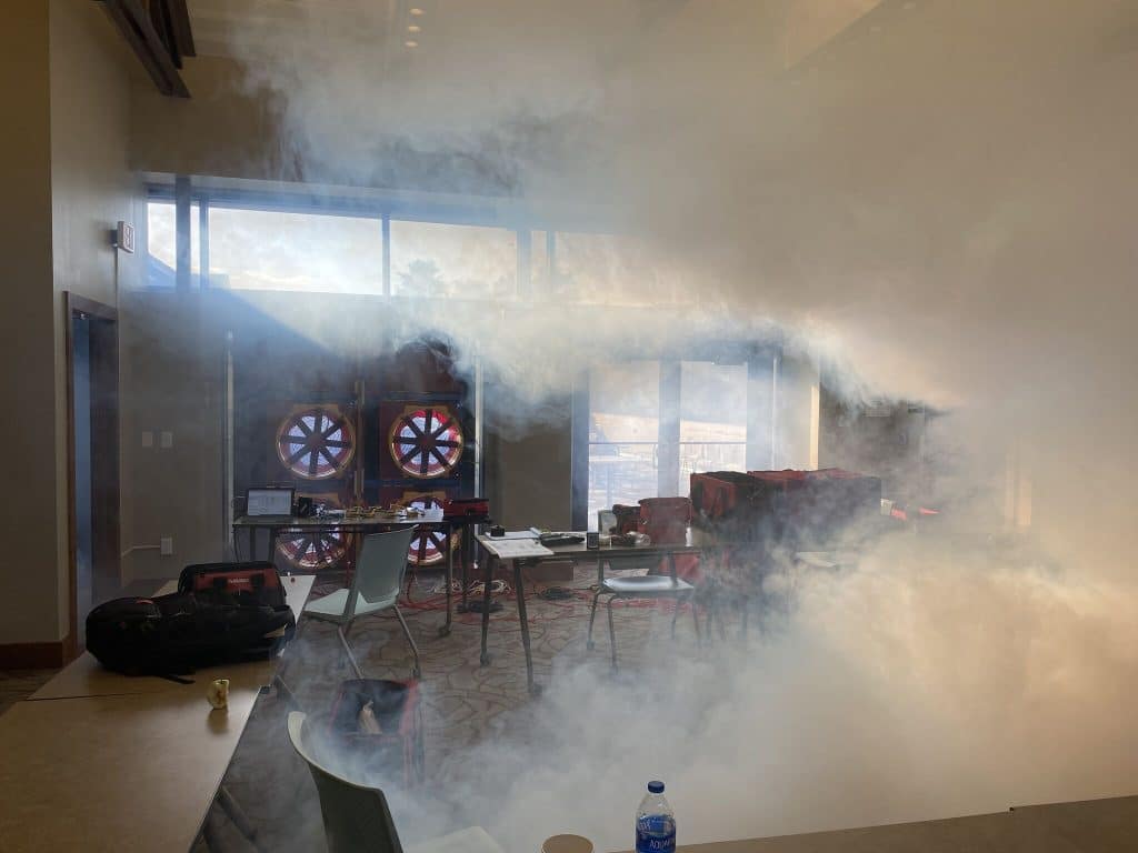 It’s Testing Tuesday! Today we’re featuring ASTM E1186, which also ties into our Blower Door Testing. In these photos, we’re finding leaks for our friends at Texas A&M University-Kingsville. How do we perform this testing? Glad you asked… If we find a leak in your building, we use this “smoke” test to pin point the exact location of the leak. We do this by using the blower door fans to pressurize the building, which then forces the “fog” or “smoke” out of the openings and makes it easy for our guys to find where the leaks are. Really cool test to perform, and it comes with awesome pictures and conversations.Reach out to Jordan Kleinecke for any of your testing needs! #ASTME1186 #ISO #Accredited #BuildingEnvelope #TestingTuesday #Construction #Testing
